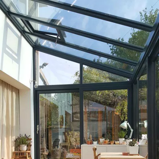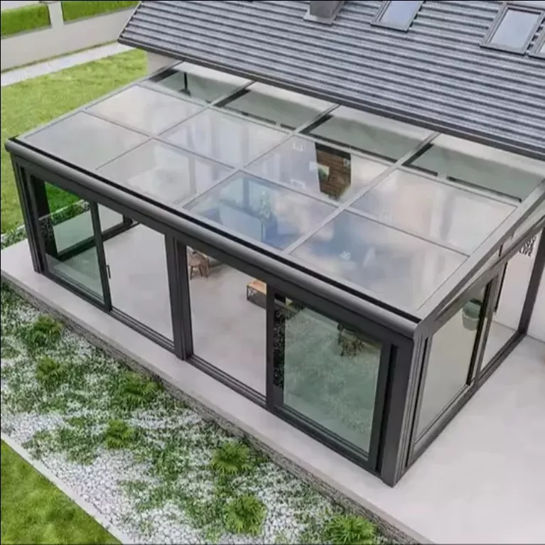 · Прилагодљивост прилагођавања: Подржава прилагођене облике као што су закривљени, коси и равни кровови, са више опција боја оквира, укључујући мат, шампањ злато и кафа, који могу прецизно да одговарају архитектонским стиловима различитих сценарија као нпр. терасе вила, дворишне рекреацијске површине и комерцијални пратећи простори, постижући јединство естетике и практичност.