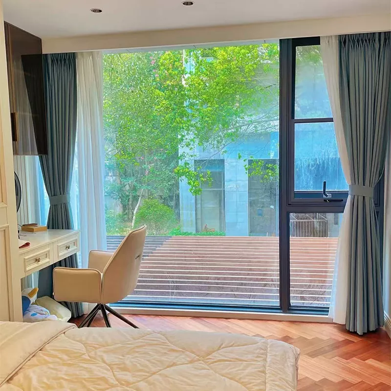 Дизајн има структуру „оквир од анодизоване легуре алуминијума + каљено стакло“, са интегрисаним угаоним склопом за равномерно распоредите напон, обезбеђујући стабилност уз одржавање лаганог оквира. Прозори су опремљени са спољне или скривене шарке од легуре алуминијума, које се отварају под углом од 90° и чврсто заптиве када су затворене. Клизна прозори имају нечујни систем стаза који глатко клизи, смањујући буку и штедећи простор—идеално за мале станови.
