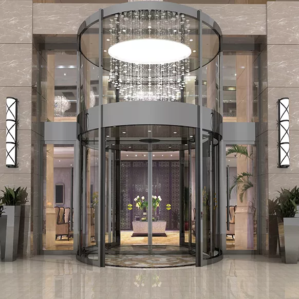 Врхунска естетика: Кружни ротирајући дизајн са глатким линијама, каљеним стаклом и прилагодљивим завршним обрадама побољшава архитектонски престижа.